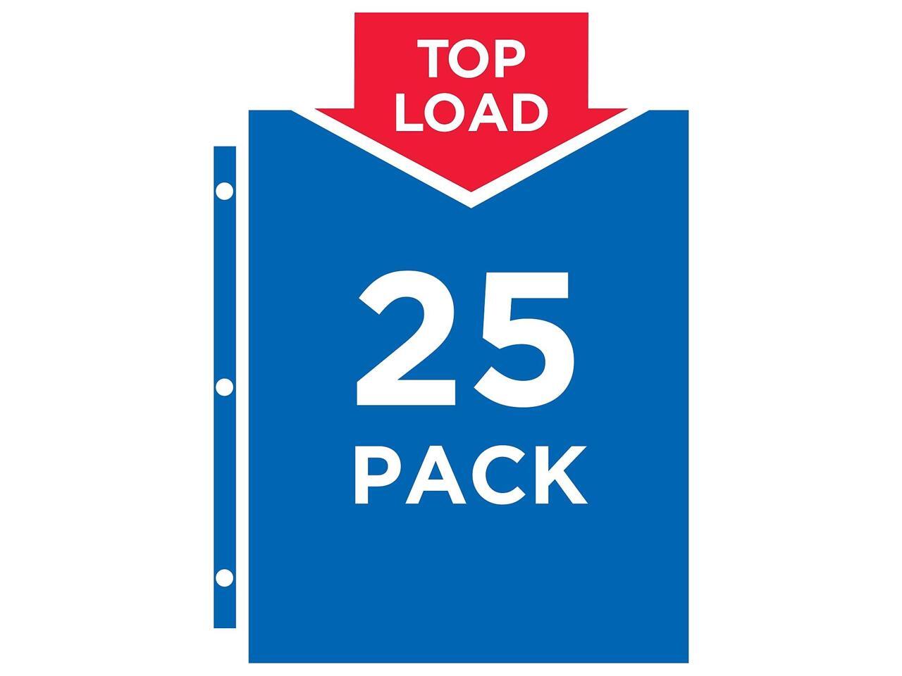 25 sheet protectors per pack. The protectors are also acid-free and archival-safe.