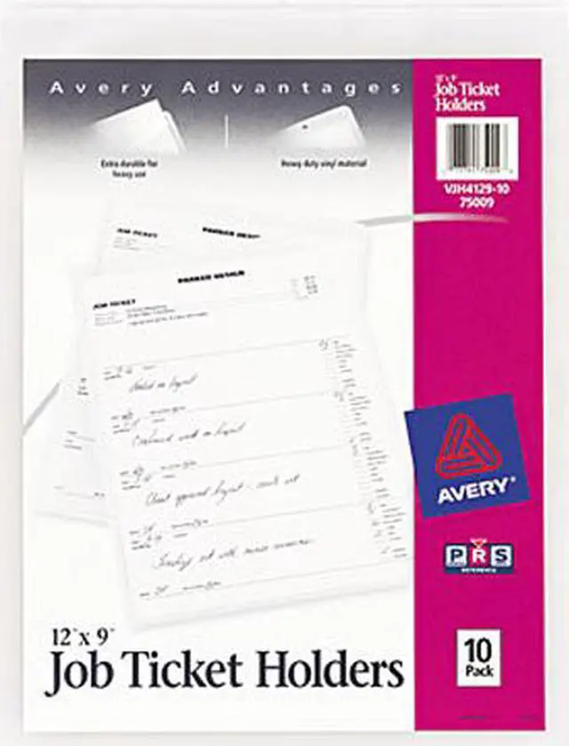 Your job tickets let you keep track of your progress on a task. Use Job Ticket Holders to ensure that this important information stays close at hand and free from damage. Other documents related to the tasks can be kept with the job ticket in one convenient place. The heavy-duty vinyl material provides protection against tears, spills and other damage as your firm makes progress on the assignment. A convenient hole at the top facilitates hanging, so you can avoid misplacement and keep the job ticket at eye level for quick reference. With these Job Ticket Holders, you've got just the ticket for workday success. Load Orientation: Top; Sheet Capacity: 10; Sheet Protector Type: Shop Ticket; Insert Size: 9 x 12.