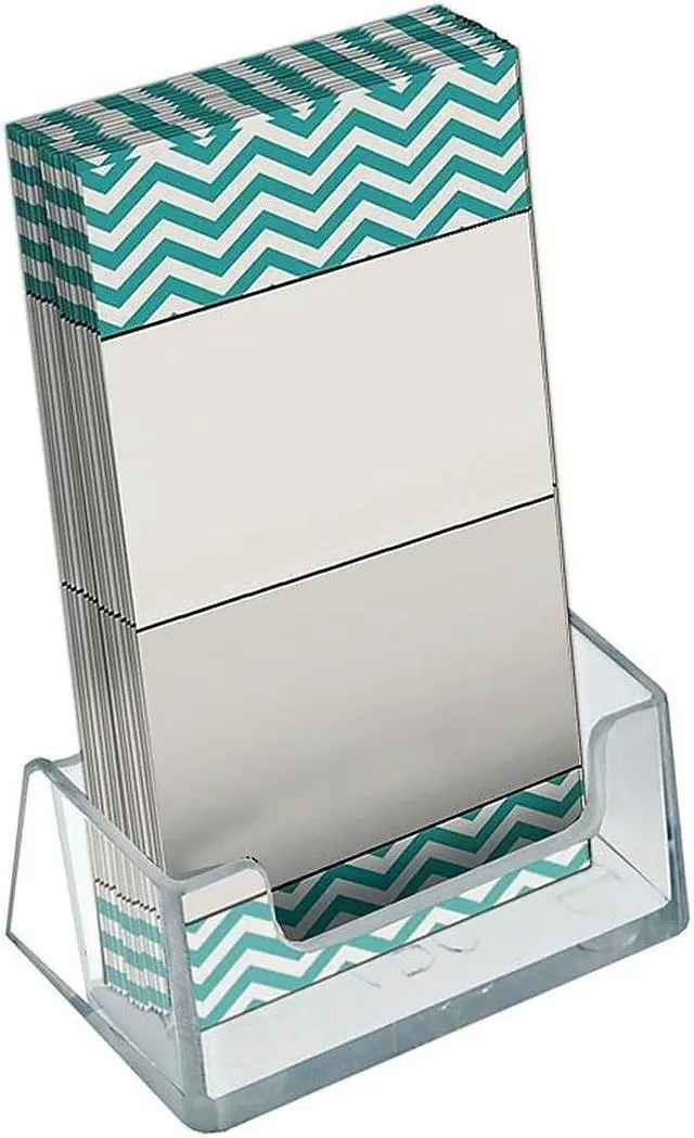 Azar Displays Vertical Business Card Holder is made of clear acrylic for easy viewing. It is used for displaying vertical business cards.