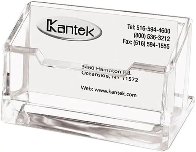 The angled, transparent design of this Clear Acrylic Business Card Holder provides easy access to cards. Offers an 80-card capacity. Made of heavy, polished cast acrylic for durability and a sleek, contemporary look. Includes nonskid feet.Color: ClearCountry of Origin: ChinaLimited Warranty: 1 Year