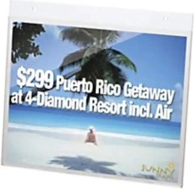 Showing off your newest promotional materials can help to increase your sales. These plastic sign holders are a simple way to showcase your brochures, sales literature and flyers, so that passersby can easily see them. Easy-loading design lets you quickly slide in your materials. Sturdy plastic construction offers a full view of displayed certificates, awards and literature. Dual holes allow easy mounting to a wall, or you can place the unit on your countertop.