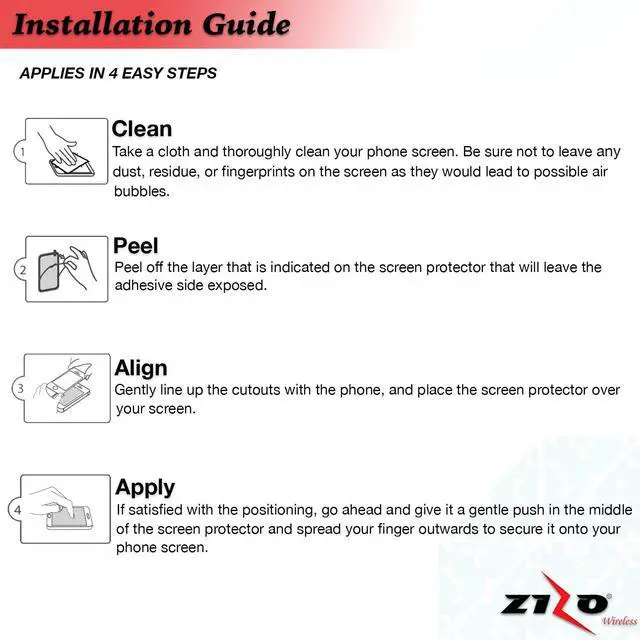 Made with ultra thin scratch-resistant, oleophobic-coated glass material, Zizo Lightning Shield tempered glass screen protector provides the protection you want and need. The glass is 0.33mm in thickness with 2.5 degree rounded edges. Lightning Shield provides full clarity and zero distortion. The 9H surface hardness yields a shatterproof protection and an absolute seamless user experience. Anti-fingerprint and anti-scratch, this is the glass screen protector you are looking for. 100% touch sensitivity with smooth, beveled corners. One-push easy installation with easy instructions written on the Zizo Lightning Shield packaging.