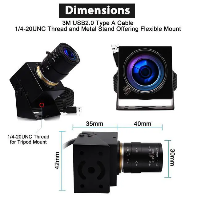 - SVPRO Webcam with zoom lens 2.8-12mm short focal length usb camera,specially great for close-ups shoot, manually controlled focus to picture what you need to take video of, adjustable focal length can meet different angle or distance requirements