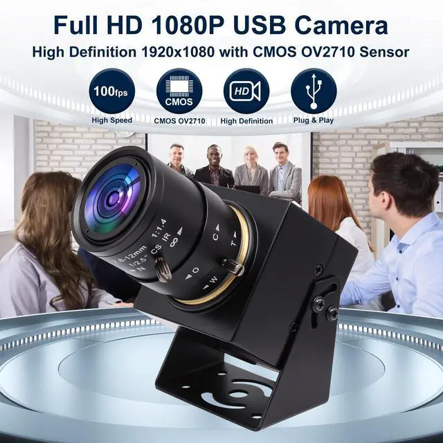 2.0 Megapixel USB Camera with Varifocal Lens 1080P Portable Webcam for Computer and Laptop