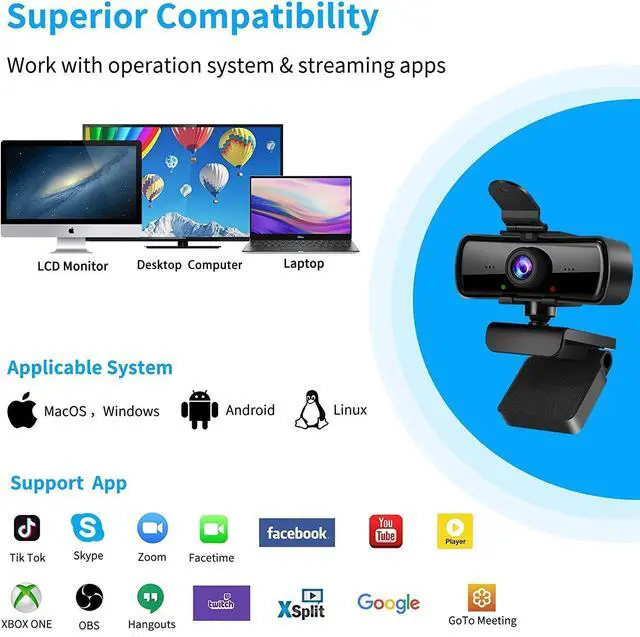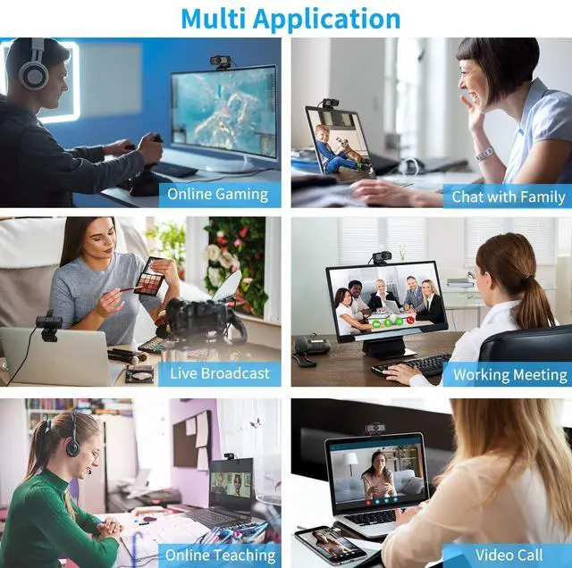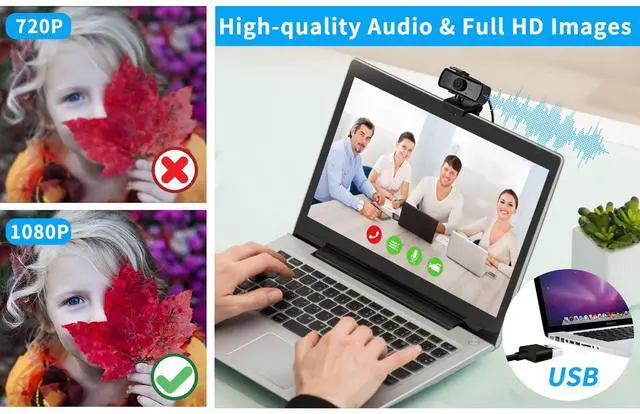 HD web camera with 120 degrees wide-angle, show more of people on group calls in 16:9 widescreen, avoid the trouble of moving the camera.
