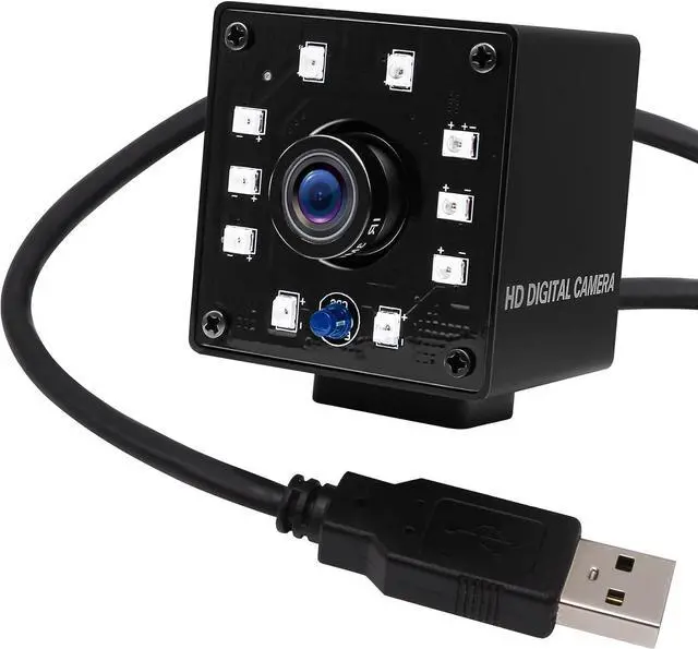Night Vision USB Camera 1080P with 10pcs IR-LEDs provides nice color images at daytime, and IR switch on automatically to get high quality and clear images at night or low light conditions.