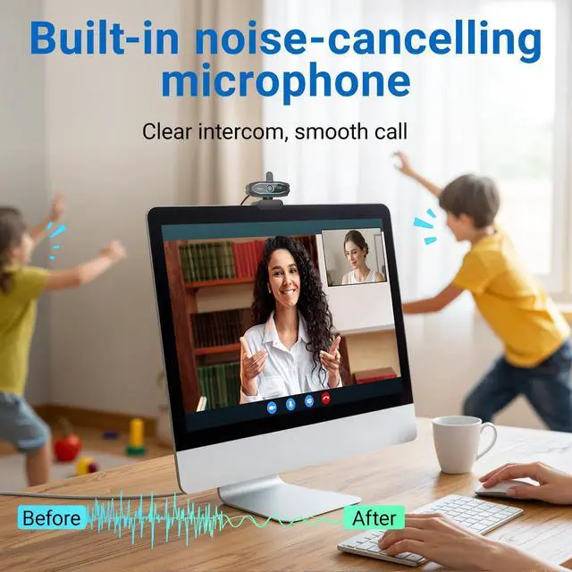 Dual Noise Reducing Microphones The noise-canceling microphone in this webcam with microphone will reduce background noise to enhance the sound quality of your video. Even in noisy surroundings, viewers can hear your voice clearly. Great for gaming, video conferencing, online teaching, and live streaming where clear audio matters.