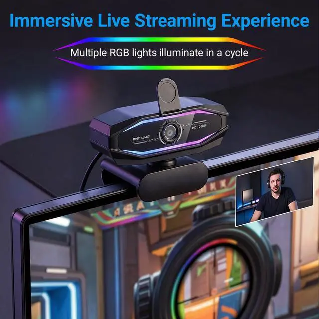 RGB Lighting Design Built-in RGB lighting brings dynamic atmosphere to your streaming setup. When you connect this streaming camera to your computer and launch your video software, the webcam with light automatically produces vibrant colorful effectselevating your gaming camera experience and helping your stream stand out.