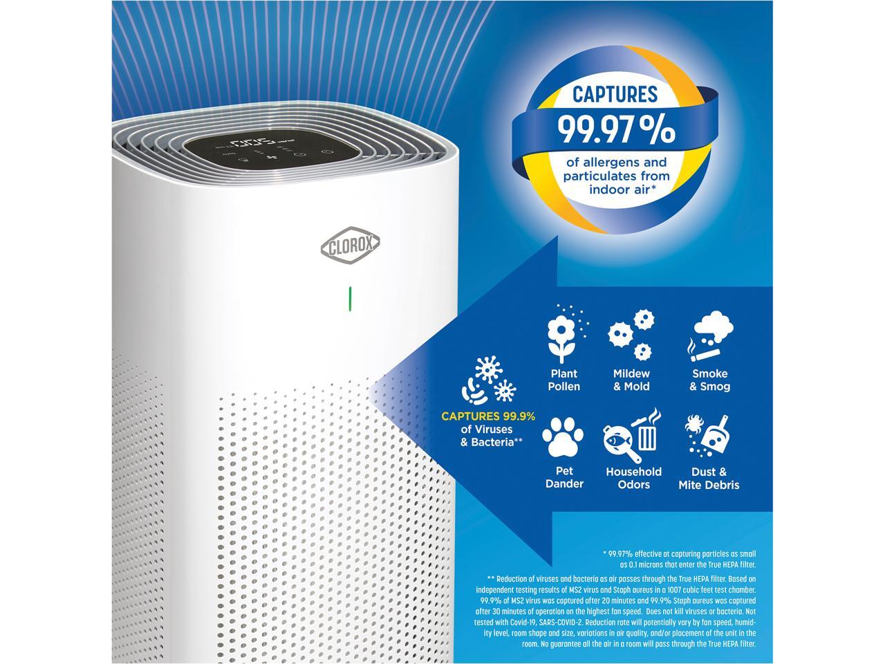 Captures 99.97% of allergens and particulates and 99.9% of viruses and bacteria