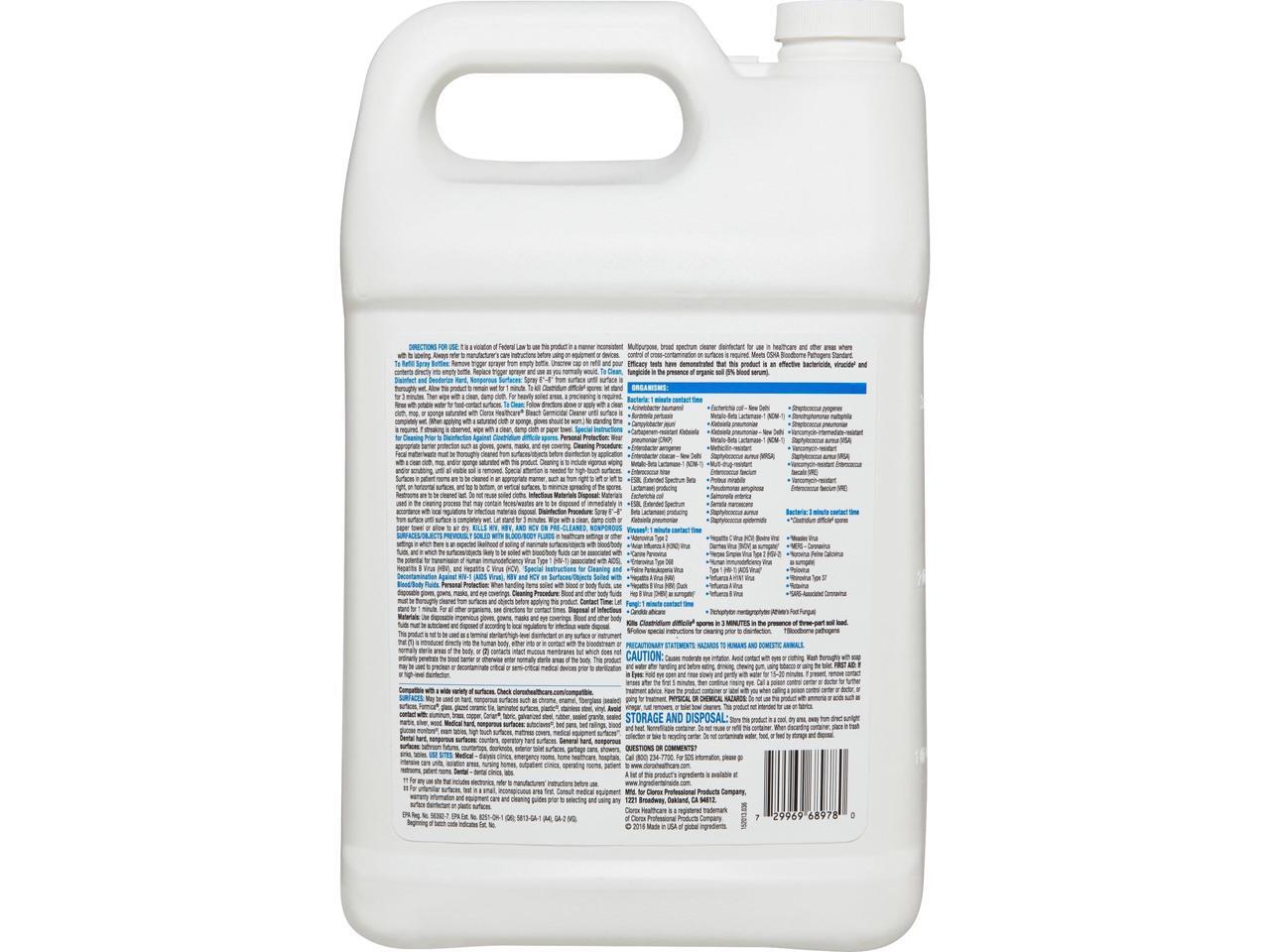 Clorox Bleach Germicidal Cleaner, 128 oz Refill Bottle, 4/Carton CLO68978CT