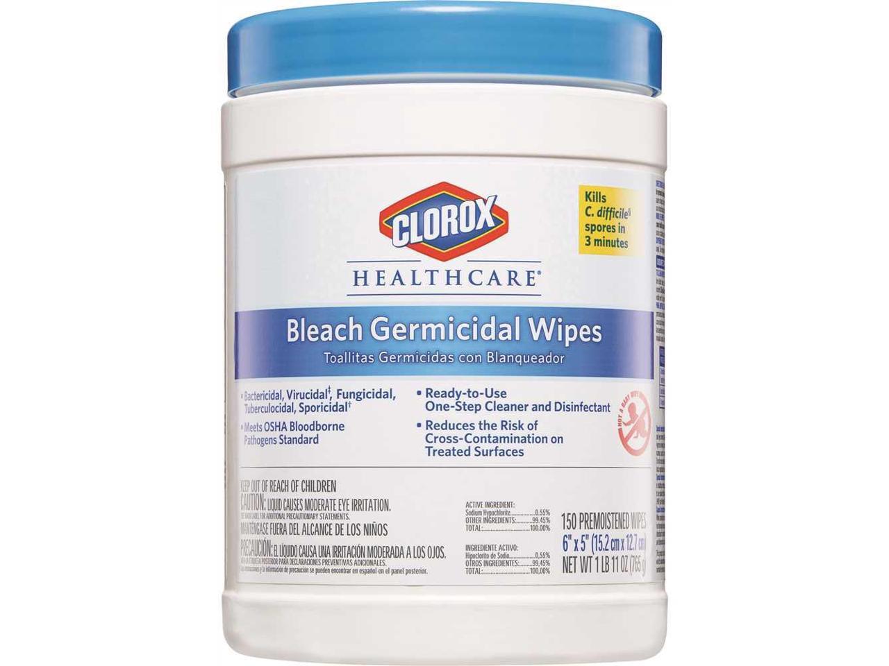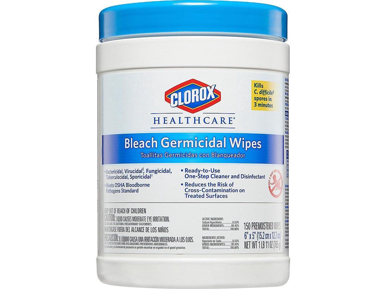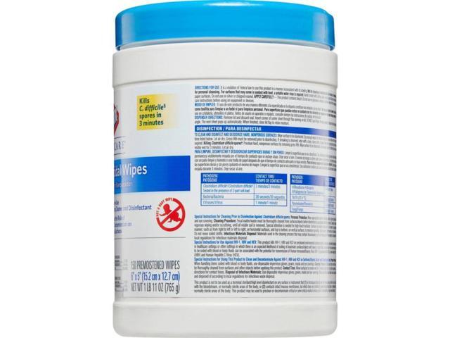 Germicidal Wipes, 6 X 5, Unscented, 150/Canister