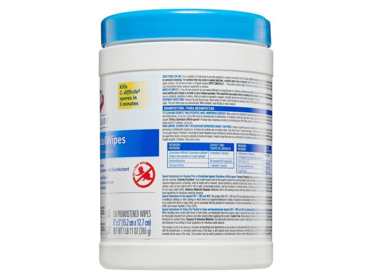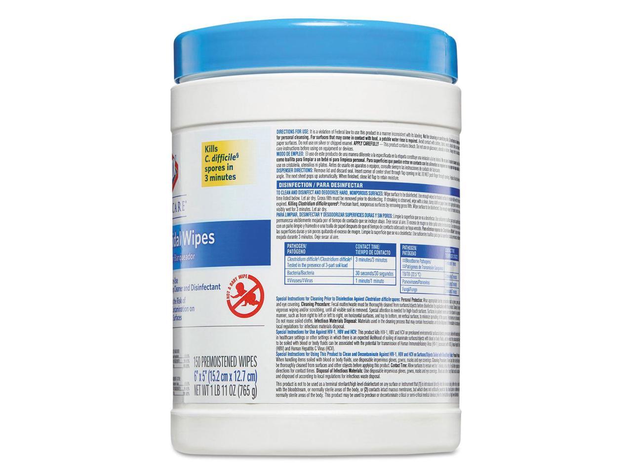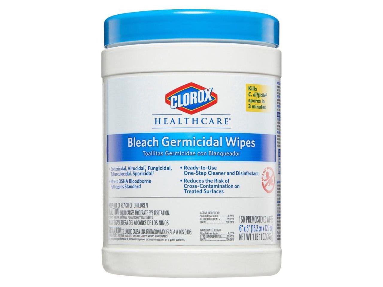 Germicidal Wipes, 6 X 5, Unscented, 150/Canister