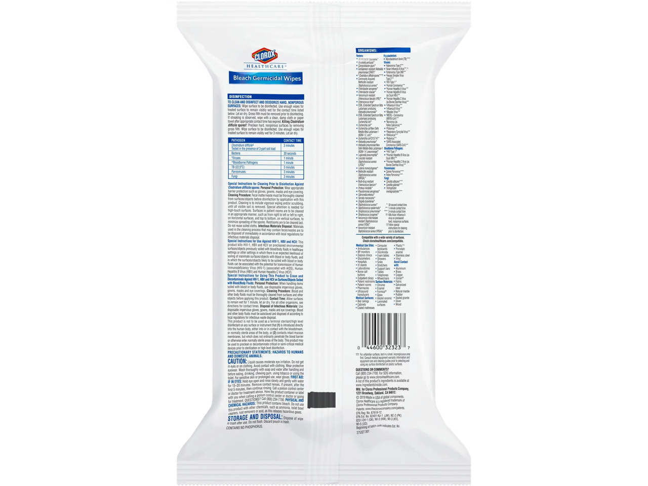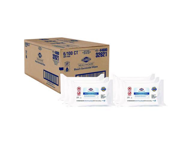 Clorox Bleach Germicidal Wipes, 6.75 x 9, Unscented, 100 Wipes/Flat Pack, 6 Packs/Carton CLO32621