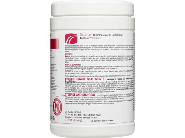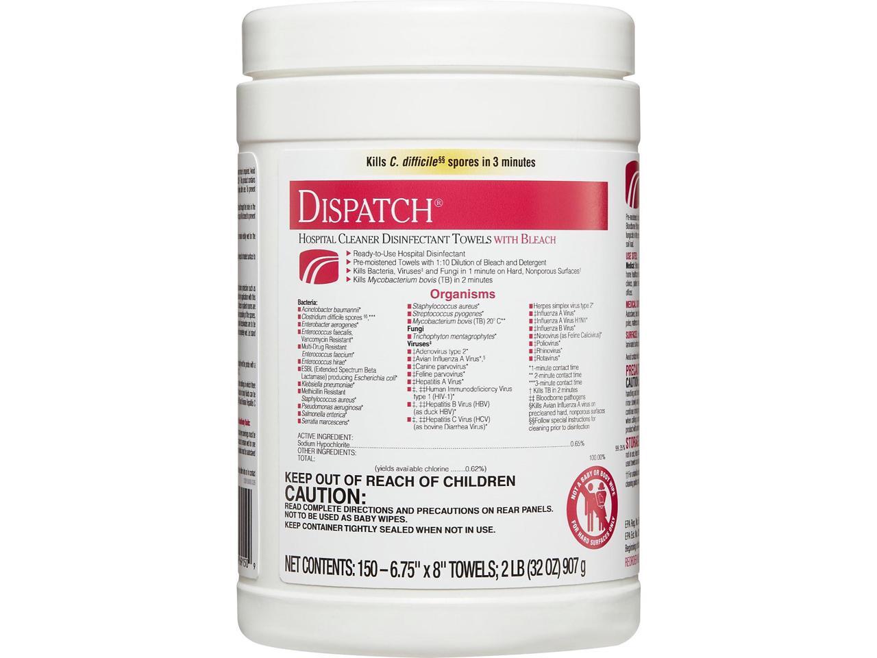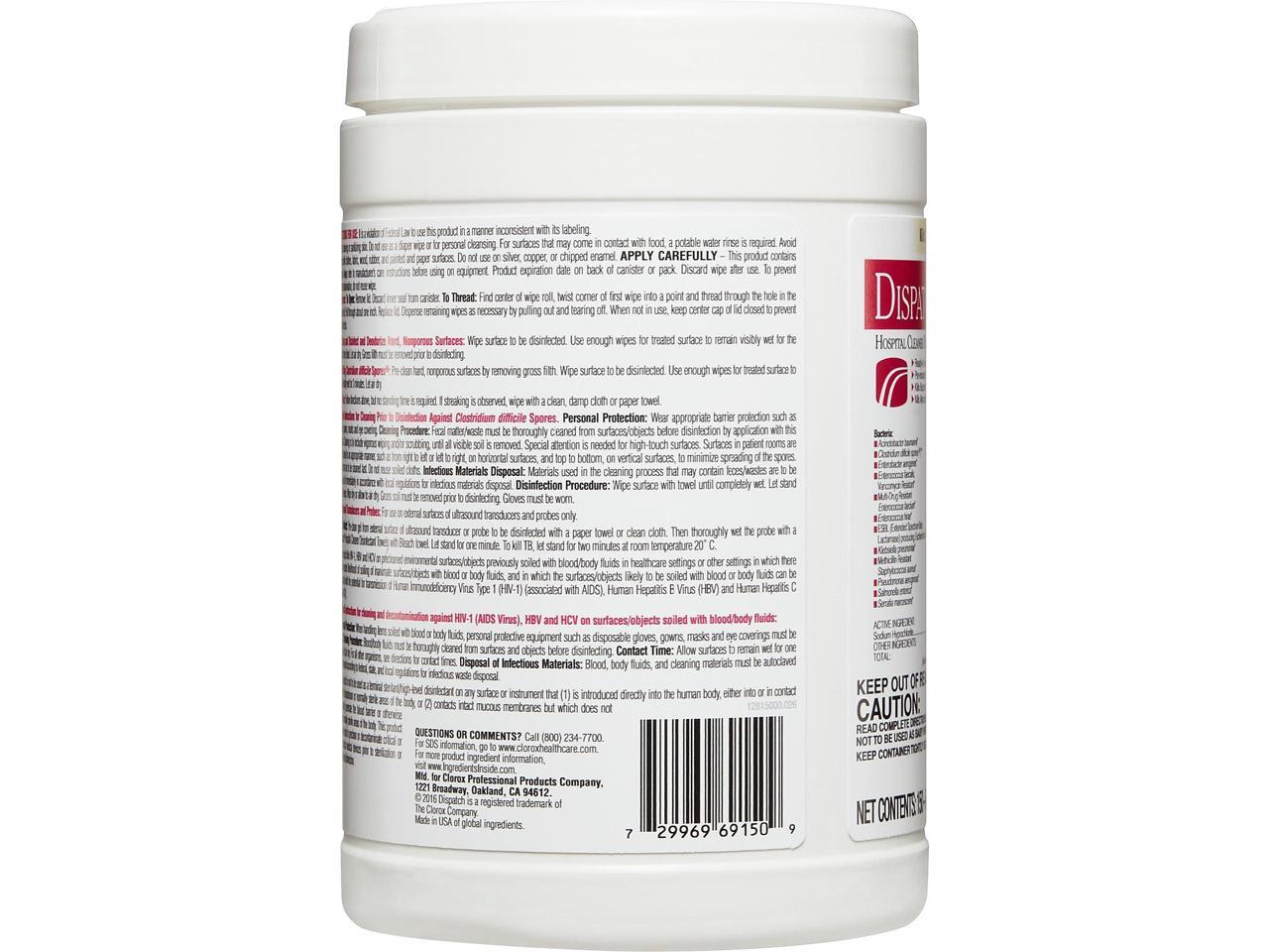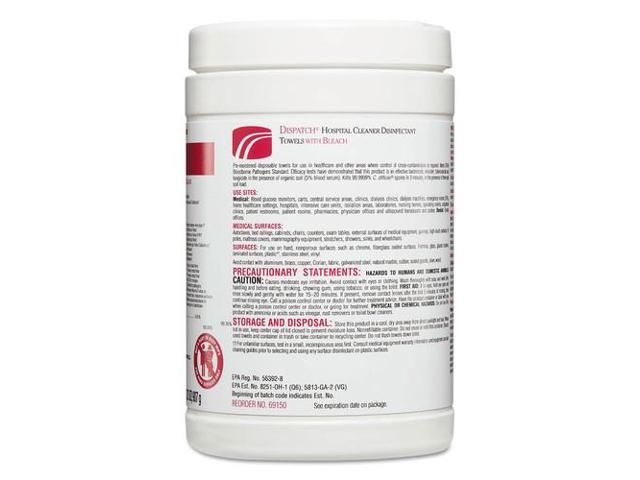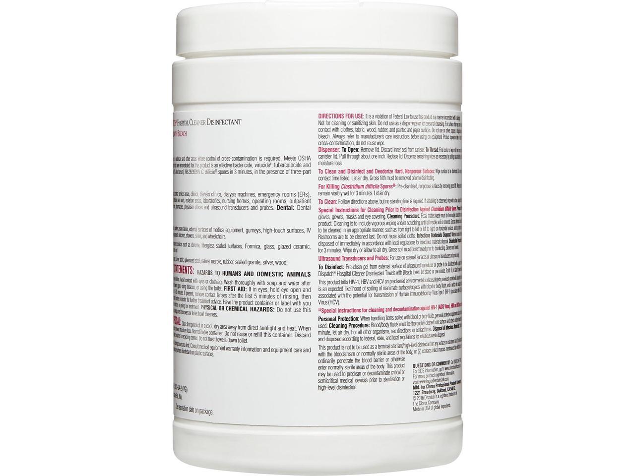 Clorox CLO 69150 Dispatch Hospital Cleaner Disinfectant Towels with Bleach Wipes Canister (150 CT.)