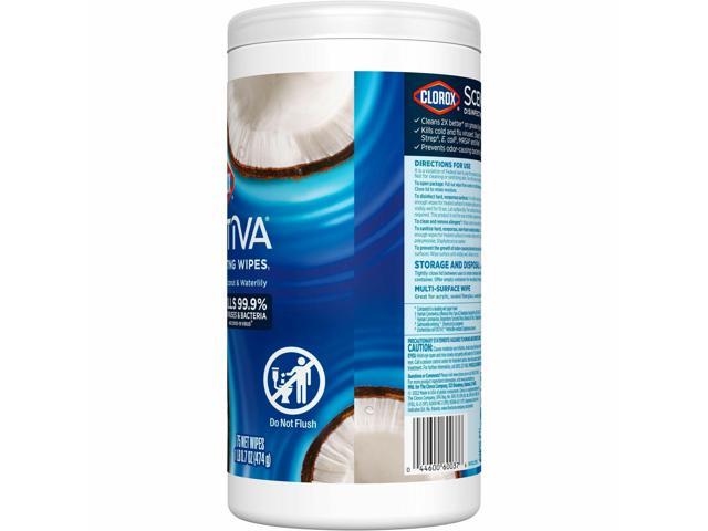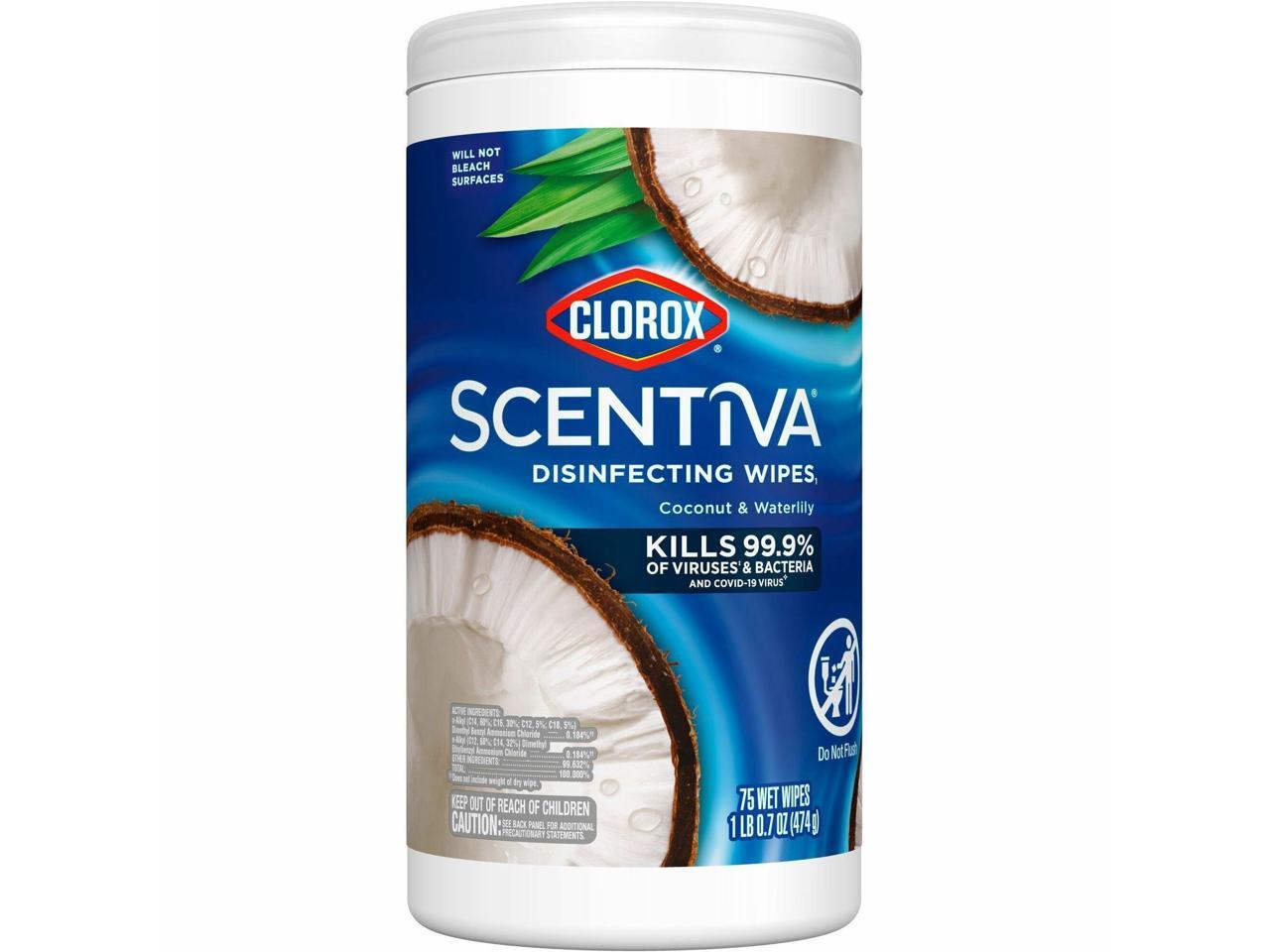 Clorox Scentiva Wipes, Bleach Free Cleaning Wipes - Coconut & Water Lily Scent - Bleach-free, Disinfectant, Deodorize - White - 75/Tub 60037