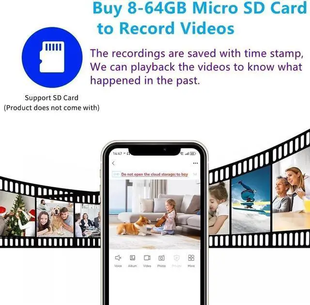 • WiFi Remote Monitor: After the camera connects to your home 2.4g WiFi, you can use your phone to remotely view the camera anytime and anywhere. Protect your home 7/24 hours.