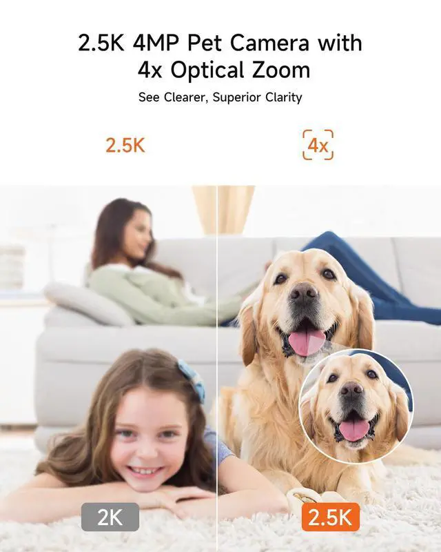 True 2.5K UHD Pet & Baby Monitor: See Every Detail. Featuring genuine 2.5K UHD resolution (not upscaled), this camera delivers impeccable clarity - so you can spot a fallen pacifier or catch a curious cat in the act. With advanced night vision, protection continues seamlessly after dark. The cat/dog cam monitor for your loved ones, offering peace of mind in crystal-clear definition.