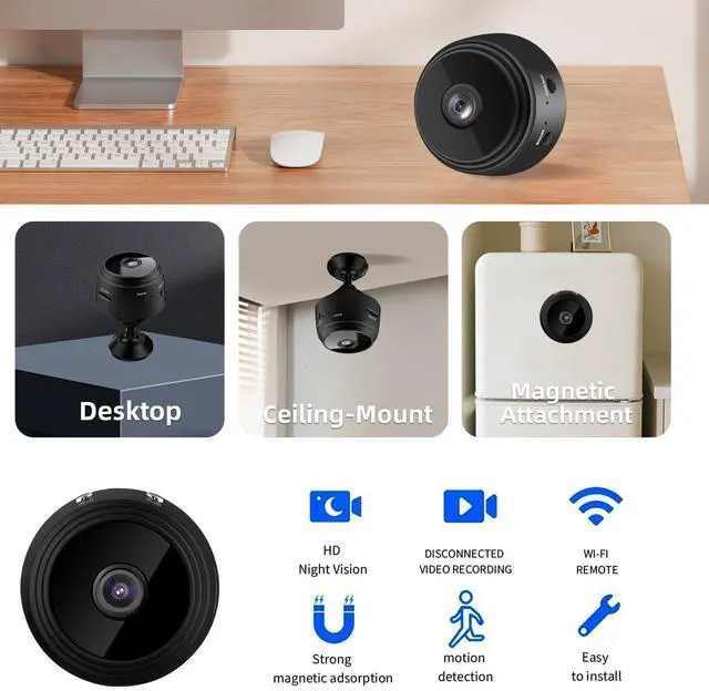 MINI WIFI HIDDEN CAMERA:Compact mini spy camera designed for discreet indoor monitoring. Perfect for home security, baby monitoring, pet cameras, nanny cams and keeping an eye on your home anytime.