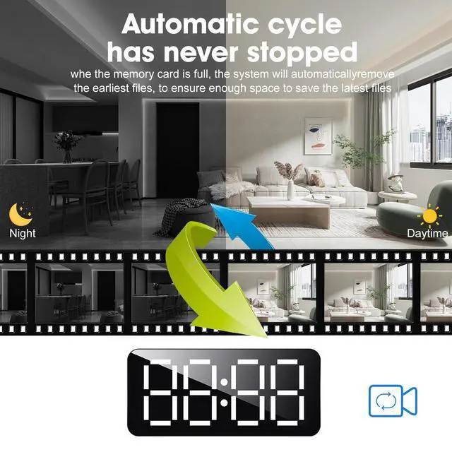 Hidden Camera Clock 1080P HD Wireless Cameras Spy Camera for Indoor Security WiFi Nanny Cam with Motion Detection for Pet/Children