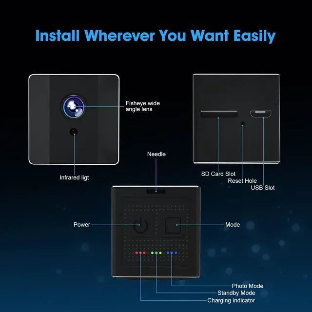 Ehomful E003 Mini Spy Camera is your best home security and portable gadget in your pocket. Only a little bit than a quarter size, build-in magnet and rechrgeable battery,this hidden camera includes all useful features you want.