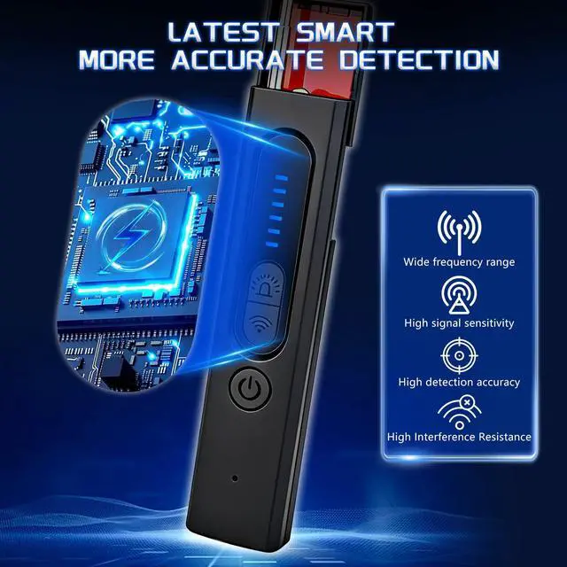 5-Level SensitivityThis hidden camera detector features an upgraded ultra-sensitive chip with 5 adjustable sensitivity levels. Customize the signal strength detection range to quickly and accurately locate hidden devices. Effortlessly find wireless audio/video equipment, transmitters, listening devices, and trackers. (Increasing sensitivity expands detection range; decreasing sensitivity narrows it)