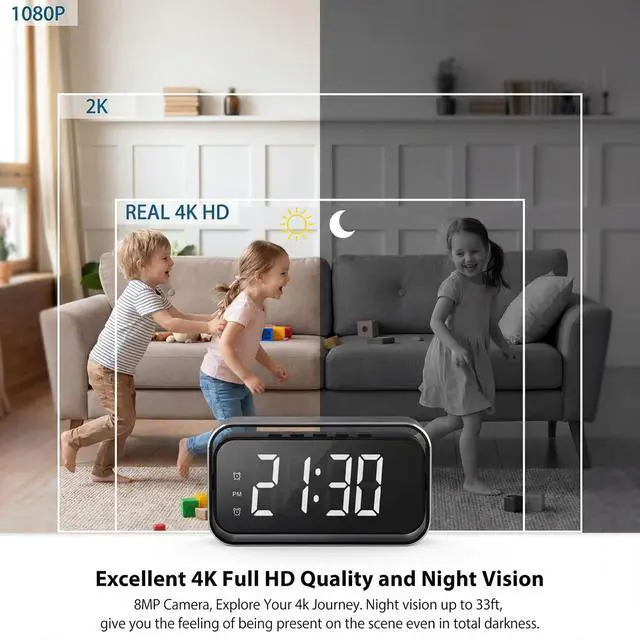 - Night Vision: The clock camera is equipped with five pieces of invisible infrared lights. This allows you to monitor your chosen room even in the dark. It also has a very sensitive light sensor that automatically turns on when the room is dark.