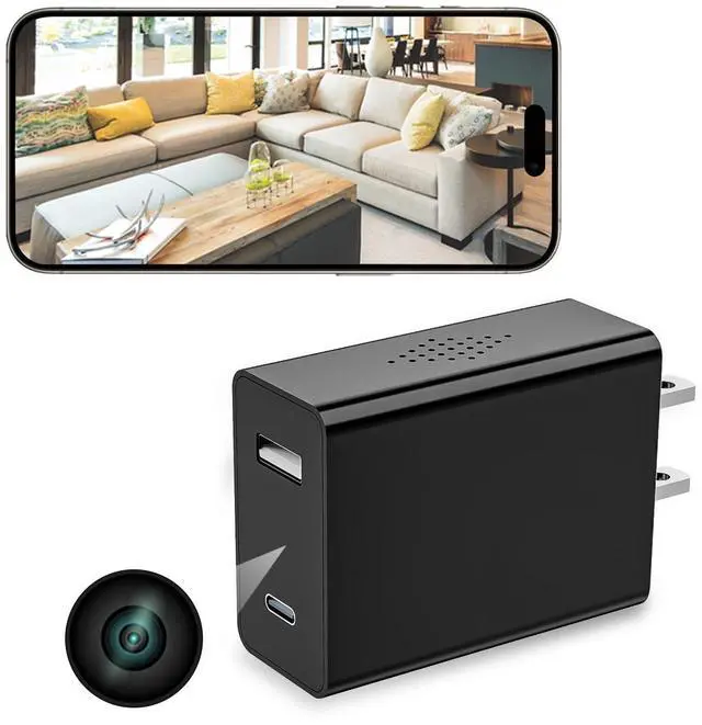 USB & USB-C Smart Charger Camera: Upgraded 2-in-1 camera charger with USB-A + USB-C dual ports, allowing you to charge two devices at the same time while recording continuously. Compatible with Android, iOS phones, tablets and more more practical than single-USB charger cameras.