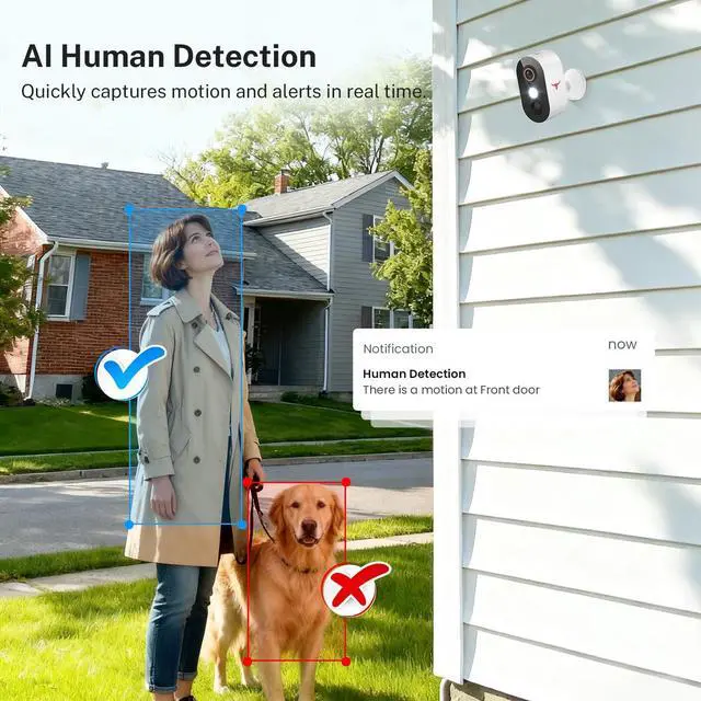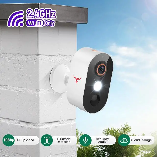 1080p Wireless Security Camera with AI Human Detection, Night Vision, 2-Way Talk, Cloud Storage, 2.4G WiFi, Battery Camera for Home Security (1 Spotlight)