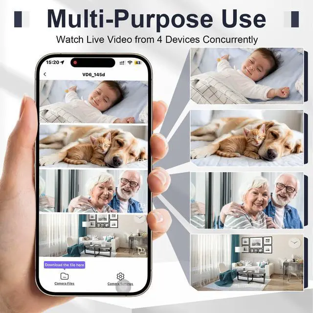 LOOP RECORDING: This smart camera supports SD card storage with automatic overwriting, providing uninterrupted recording without manual deletion.(SD card not included in the package)