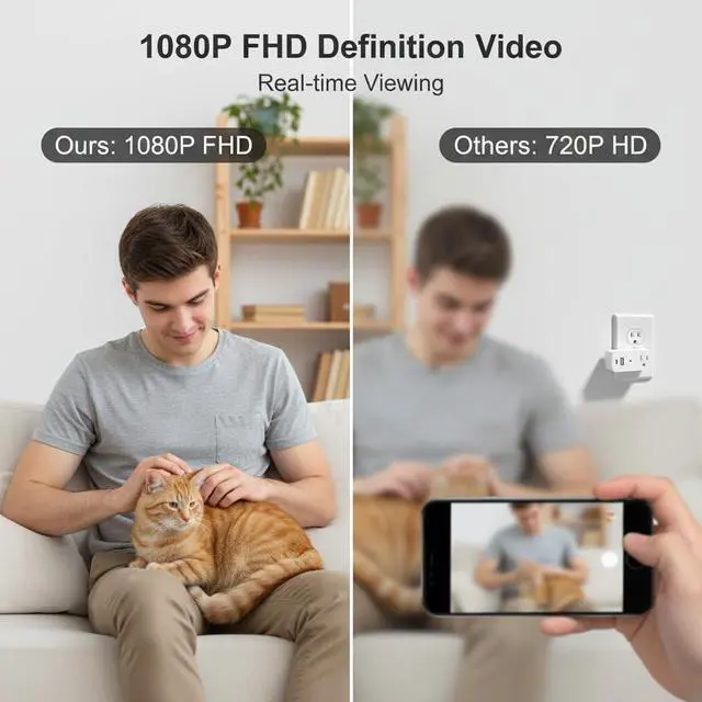 1080P Power Strip Mini Camera Wireless WiFi Connection App View Pictures Taking Plug Cam for Indoor Security Built-in 32GB SD Card Wall Outlet (No Audio)