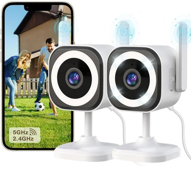 Dual-Antenna Stable 5G WiFi Security Camera, 4X Zoom 2K Outdoor Indoor Camera for Baby/Pet, Home Security WiFi Camera with Color Night Vision, Two-Way Talk, IP66, SD/Cloud Storage (2-Pack)
