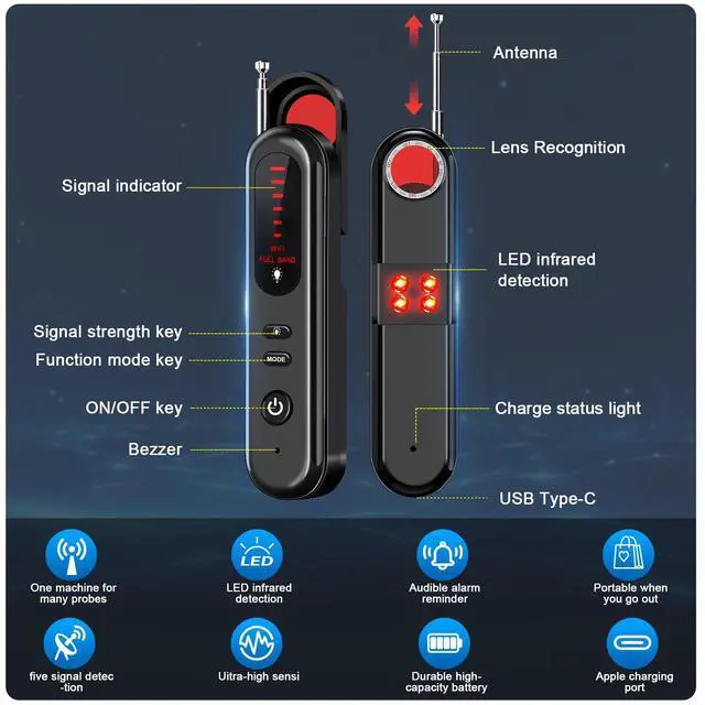 All-in-One Functionality: Combines camera detection, GPS tracker detection, bug detection, and RF wireless signal scanning for comprehensive privacy protection.