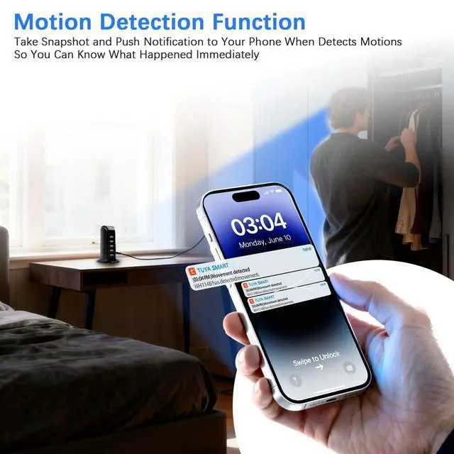 Features motion detection mode, this hidden camera USB charger will take a snapshot and push notification to your phone when detects movements, so you can know what happened immediately and keep your home or office safe