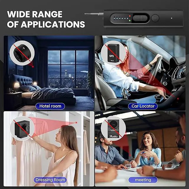 Multi-Detection Technology: Detects wireless signals, finds pinhole cameras via infrared, locates magnetic GPS trackers, and includes a built-in flashlight for comprehensive security coverage
