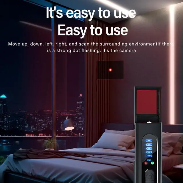2025 Upgraded Version: Through infrared LED bead sensing and strong magnetic spectroscopy technology, it has RF signal detection function, accurately identifying hidden cameras. Simply turn on the power, scan the area, and the sound alarm and LED indicator will notify you of any threats. It can protect your privacy and security within seconds, effectively detecting a range of 30 square meters.