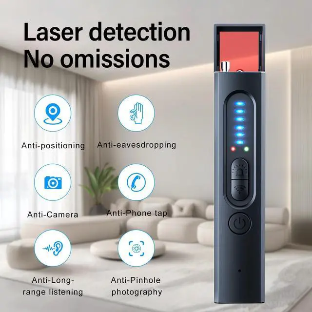 Enhanced Sensitivity: Equipped with an omnidirectional RF antenna, it enhances detection range and accuracy. The camera detector is equipped with an upgraded ultra-sensitive chip, boasting 5 levels of sensitivity, making it ideal for use in homes, offices, travel, cars, and other places. It is also recommended for finding hidden devices such as hotels, conference rooms, rooms, flower pots, wall clocks, mirrors, light bulbs, speakers, etc. It can provide you with reliable protection, ensuring you quickly and accurately locate any hidden devices.