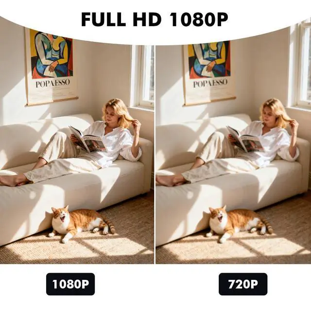 250° Ultra-Wide Angle and 1080P Full HD QualityThe 250° wide-angle lens easily covers every corner of the space. 1080P Full HD resolution ensures clear and sharp video, capturing every detail.