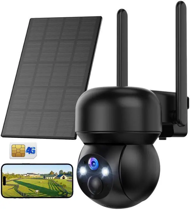 4G LTE Cellular Solar Security Camera Outdoor: No WiFi Solar Powered Security Camera Outdoor Built in SIM Card 2K Battery Wireless Cameras for Home Surveillance Outside 360° Live View Motion Detection