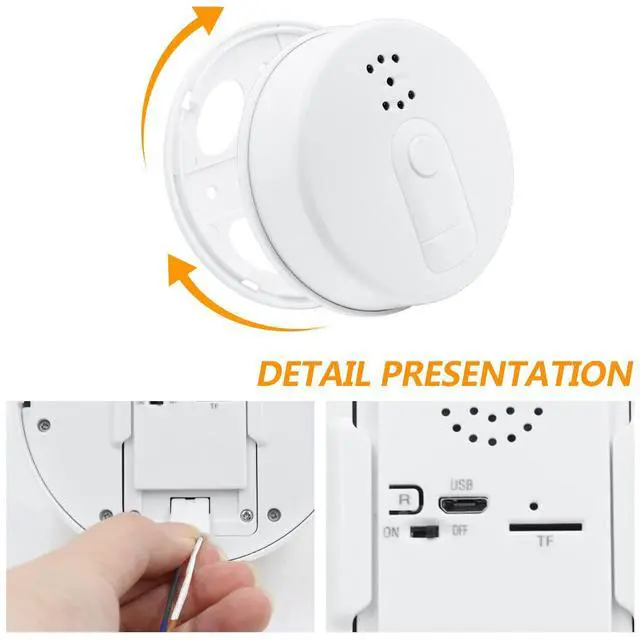 Transform any room into a secure space with this innovative hidden camera disguised as a standard smoke detector. Featuring crystal-clear 1080P video recording and night vision capabilities, this surveillance device provides round-the-clock monitoring through your smartphone. The built-in WiFi connectivity enables remote viewing and instant motion detection alerts, while the 4-hour battery life ensures reliable operation. Perfect for indoor monitoring of pets, children, or elderly family members, this discrete camera offers peace of mind through real-time surveillance. The easy-to-use app allows you to check in anytime, anywhere, making it an ideal solution for home or office security needs. The device's conventional smoke detector appearance maintains complete discretion while providing professional-grade surveillance features. Installation is straightforward, and the intuitive controls make operation simple for any user.