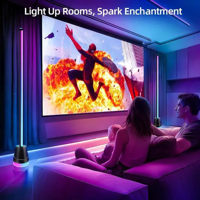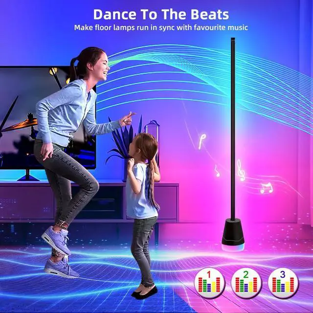 Transform your living space with this cutting-edge corner floor lamp that brings both illumination and entertainment. The smart RGB lighting system offers an impressive palette of 16 million colors, allowing you to create the perfect ambiance for any occasion. Control your lighting experience effortlessly through the companion app or included remote control, adjusting colors, brightness, and effects with just a few taps. One of its standout features is the music sync capability, which makes the lights dance and pulse in rhythm with your favorite tunes, creating an immersive atmosphere perfect for parties or relaxation. The sleek, modern design features a minimalist vertical structure that fits elegantly into corners, making it an ideal choice for bedrooms, living rooms, or entertainment spaces where space efficiency matters. The lamp's versatile lighting modes can accommodate various needs - from bright task lighting to subtle mood lighting for movie nights. Whether you're looking to add a contemporary accent to your room or create dynamic lighting effects, this smart corner lamp delivers both style and functionality in one sophisticated package.