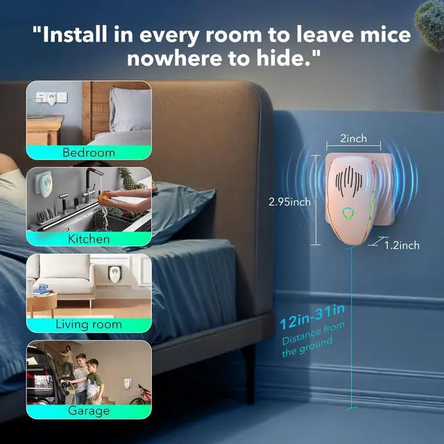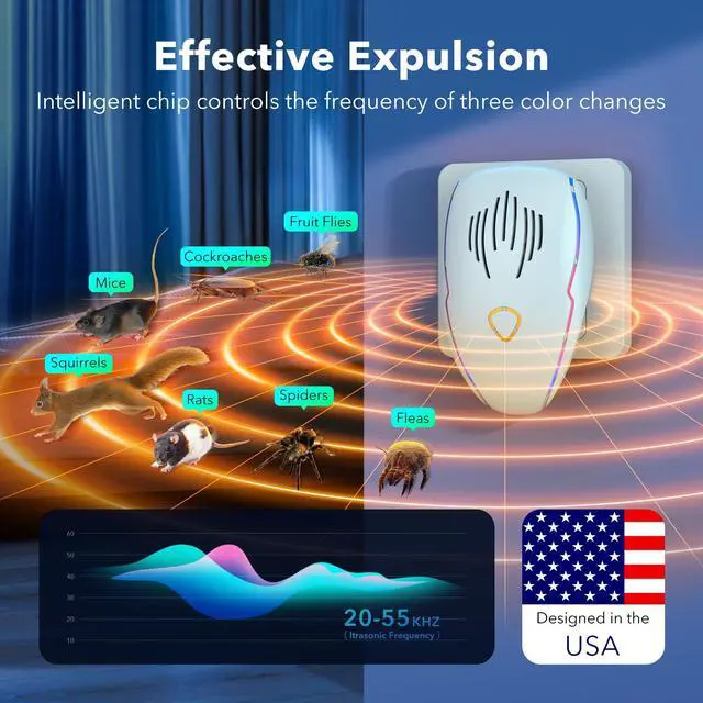 Transform your home into a pest-free sanctuary with this advanced ultrasonic pest repeller system. The 2-pack set features three distinct operating modes to effectively target various unwanted visitors like mice, roaches, spiders, and other household pests. This 2025 upgraded version utilizes ultrasonic technology that's safe for humans and pets while creating an uninviting environment for pests. Simply plug these devices into your wall outlets for continuous protection throughout your living space. The multiple modes allow you to customize the repelling frequency based on your specific needs. These compact units work quietly and discreetly, requiring no messy traps or chemicals. Perfect for use in basements, attics, garages, or any indoor space where pests typically enter. Take control of your home's pest situation with this modern, convenient solution that works around the clock to help maintain a pest-free environment.
