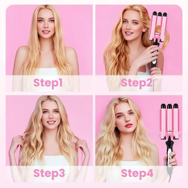 Professional-Grade Natural Waves: Featuring a 25mm (1-inch) triple-barrel ceramic curling iron, this 3 barrel curling iron creates long-lasting, salon-quality S-shaped waves effortlessly. The 3-barrel design forms curls 50% faster than single-barrel irons, saving styling time while delivering voluminous, natural-looking waves that stay intact all dayperfect for daily wear or special occasions.