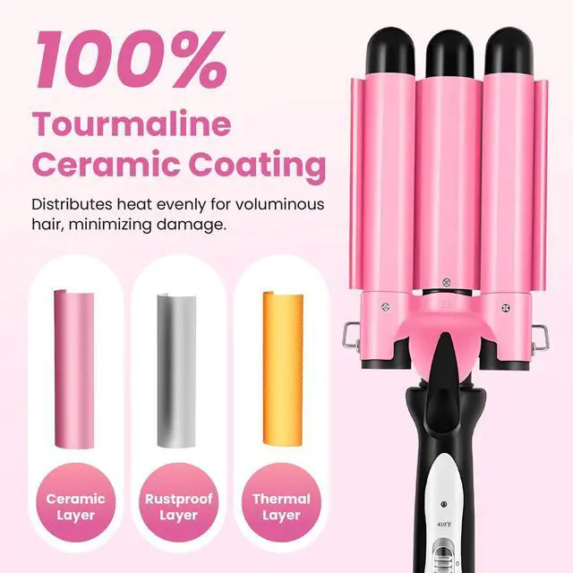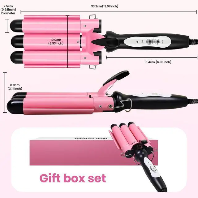 Hair Protection Technology: The 1 inch 3 barrel hair crimper iron is designed with ceramic glaze coating technology, and high-temperature resistance, ceramic technology provides high and even heat while protecting hair, 3 barrel curling iron 1 inch can make your hair healthier, natural, and shiny.
