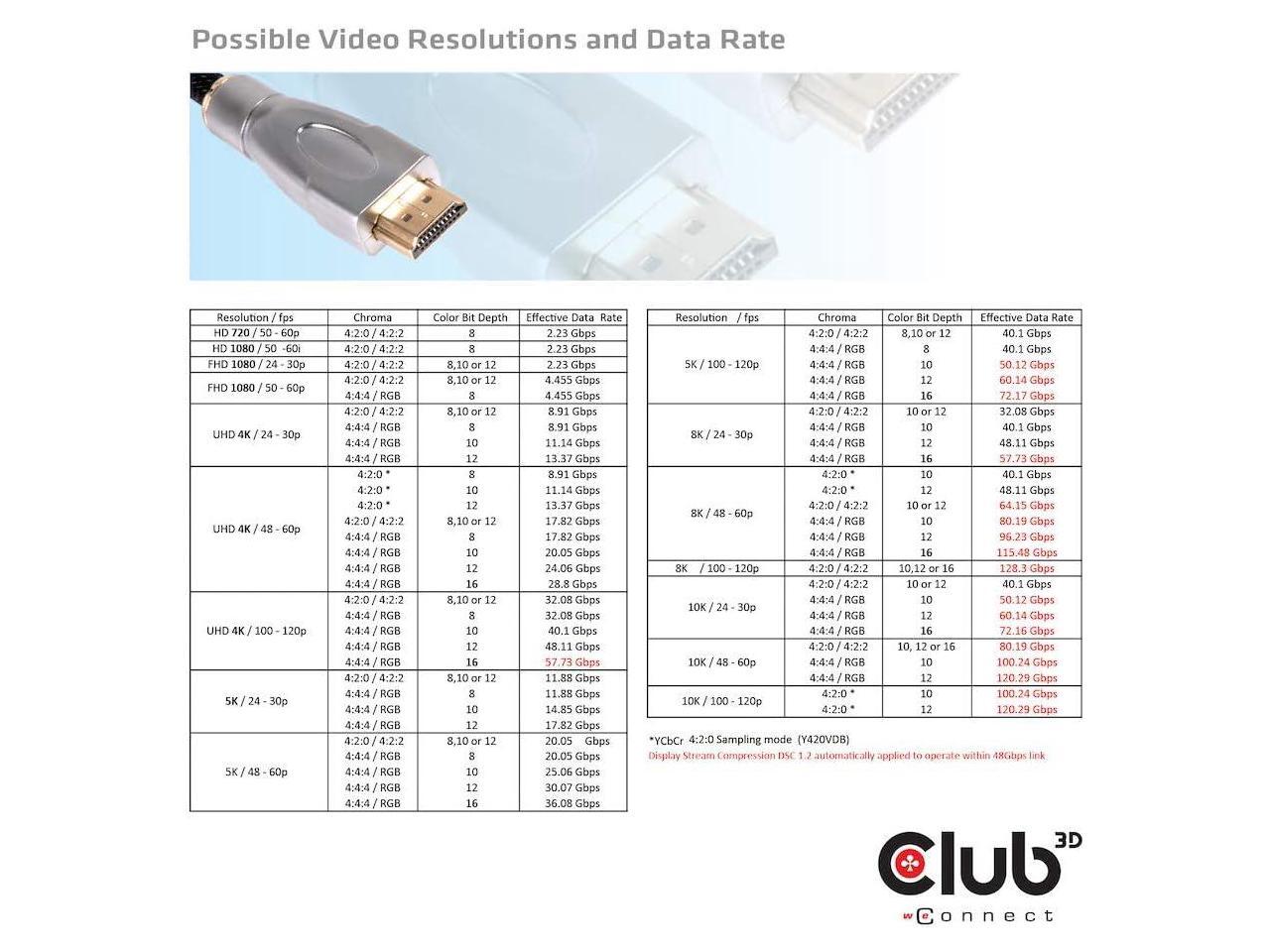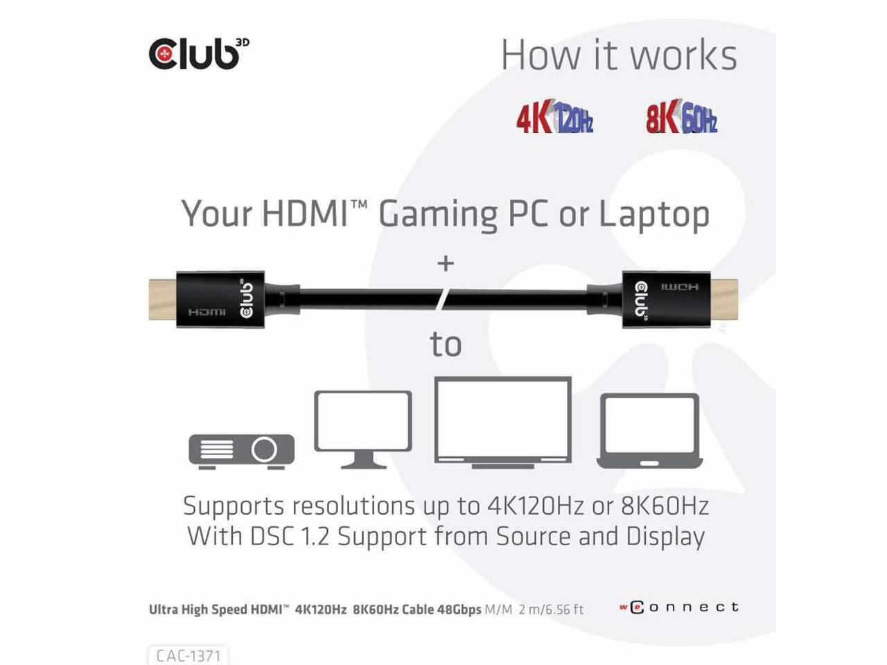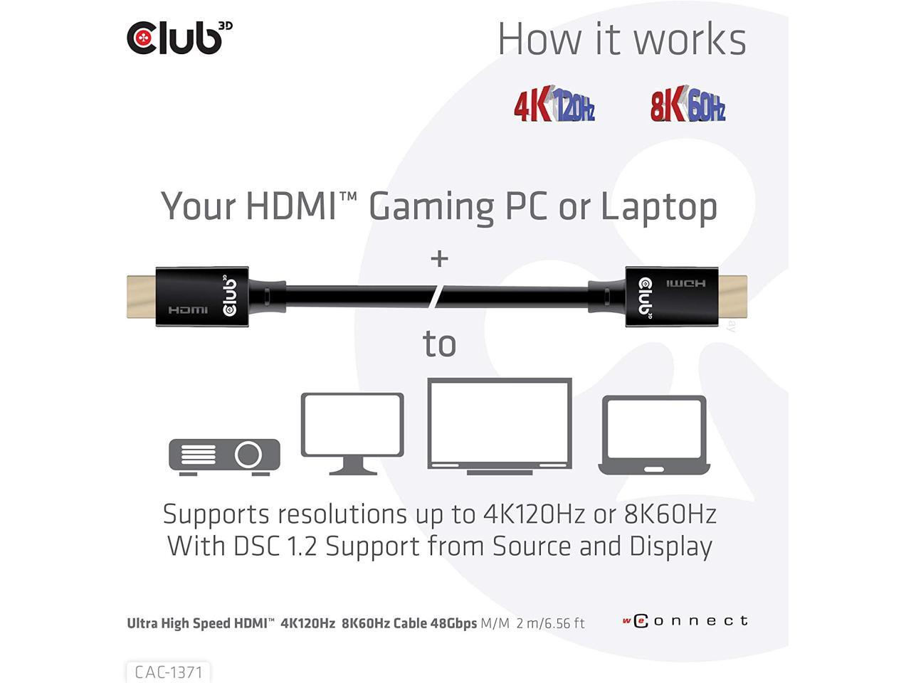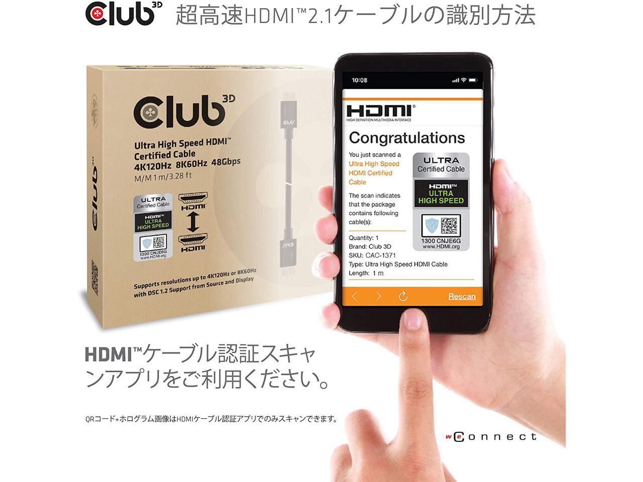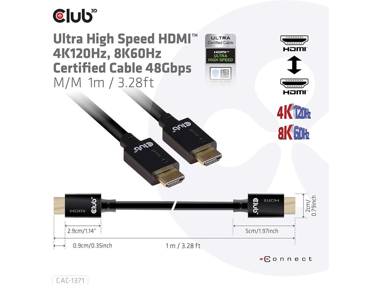 Club 3D Ultra High Speed HDMI™ Cable 10K 120Hz 48Gbps M/M 1 m./3.28 ft.
