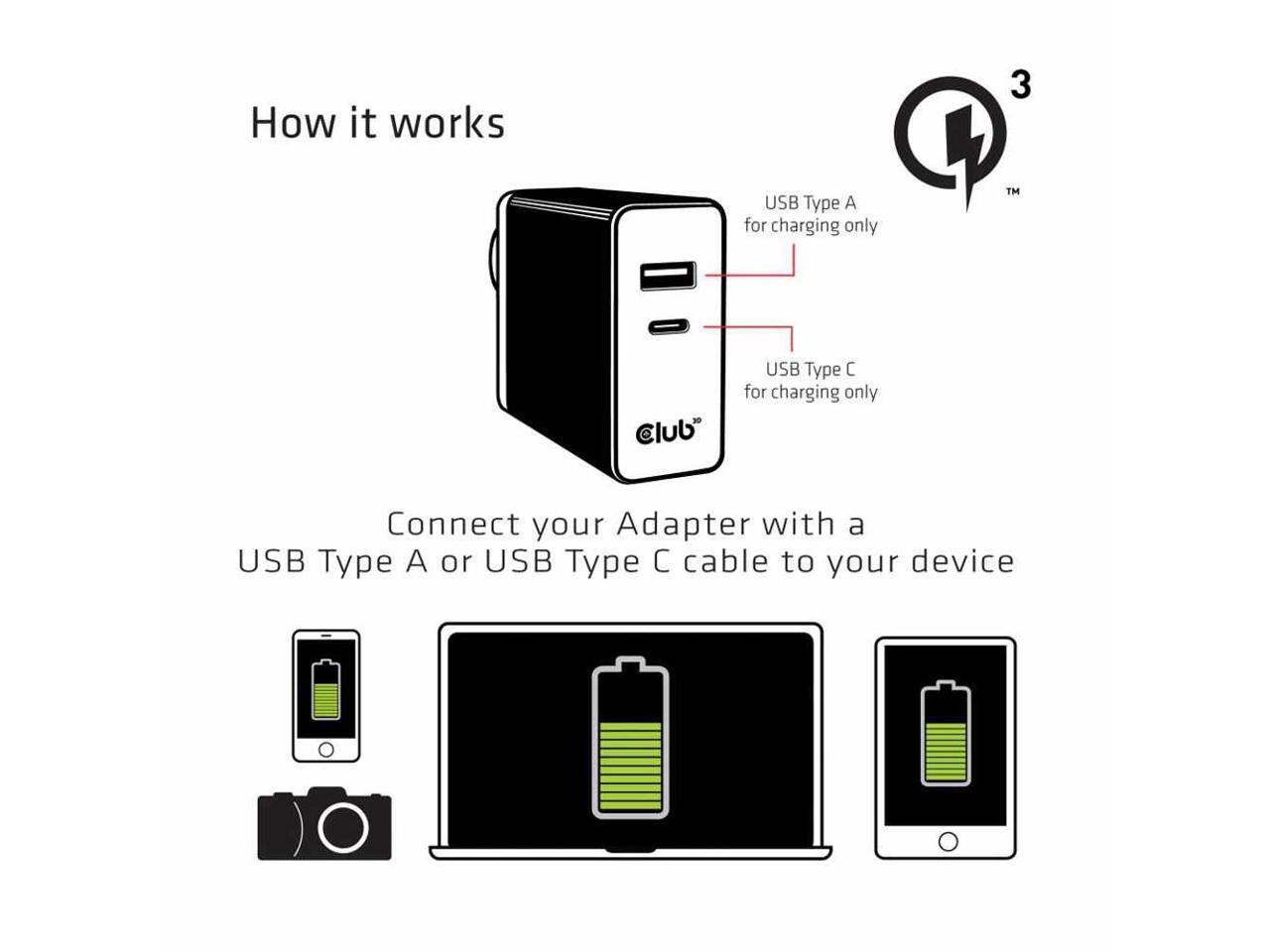 Club3D CAC-1902 USB Type A and C Wall Power Charger up to 60W
