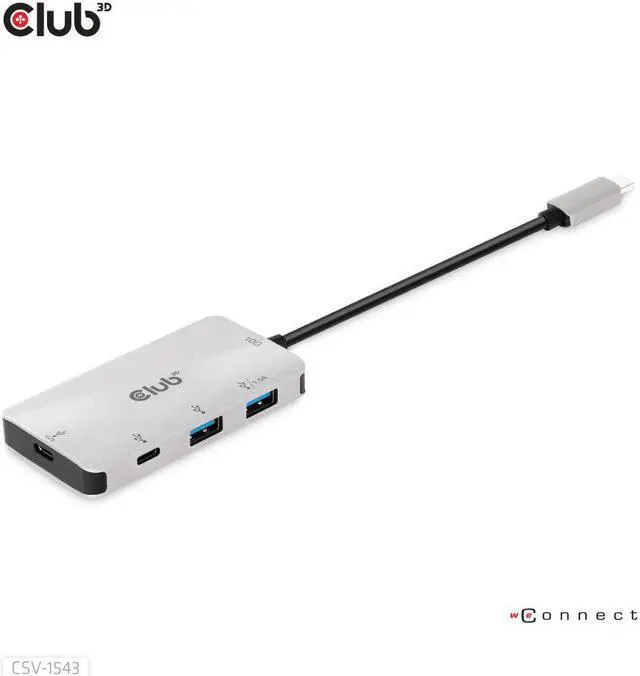 Club3D CSV1543 USB-C Gen2 PD Charging Hub to 2x USB-C 10G ports and 2x USB 10G ports Silver