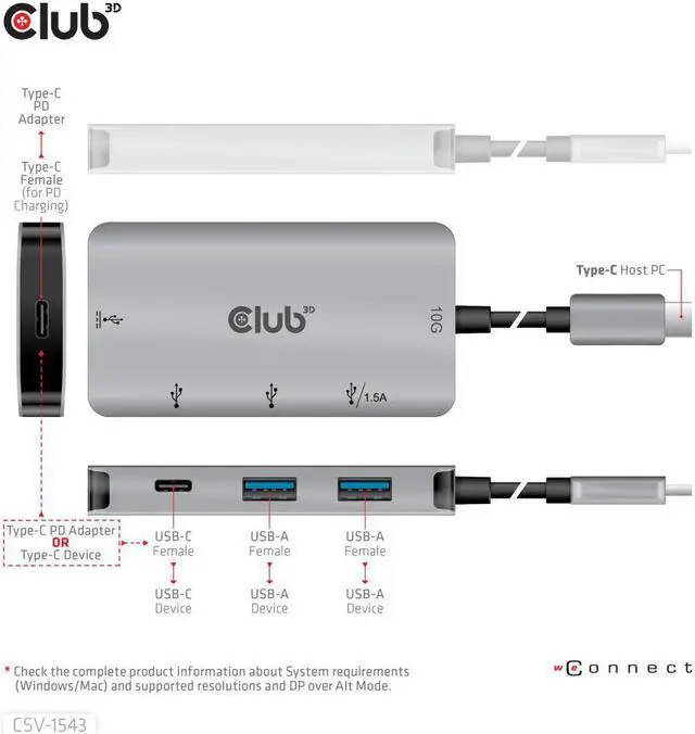 Package Contents CSV-1543 USB Type-C PD Charging Hub to 2x Type-C 10G ports and 2x USB Type-A 10G ports