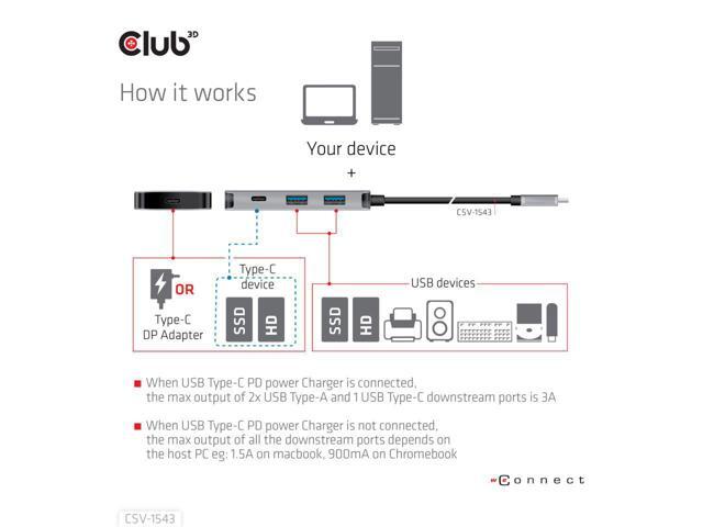 - 1 x USB Type-A Female for Data and Charging (Max.1.5A when a USB Type-C PD Power Charger is connected)