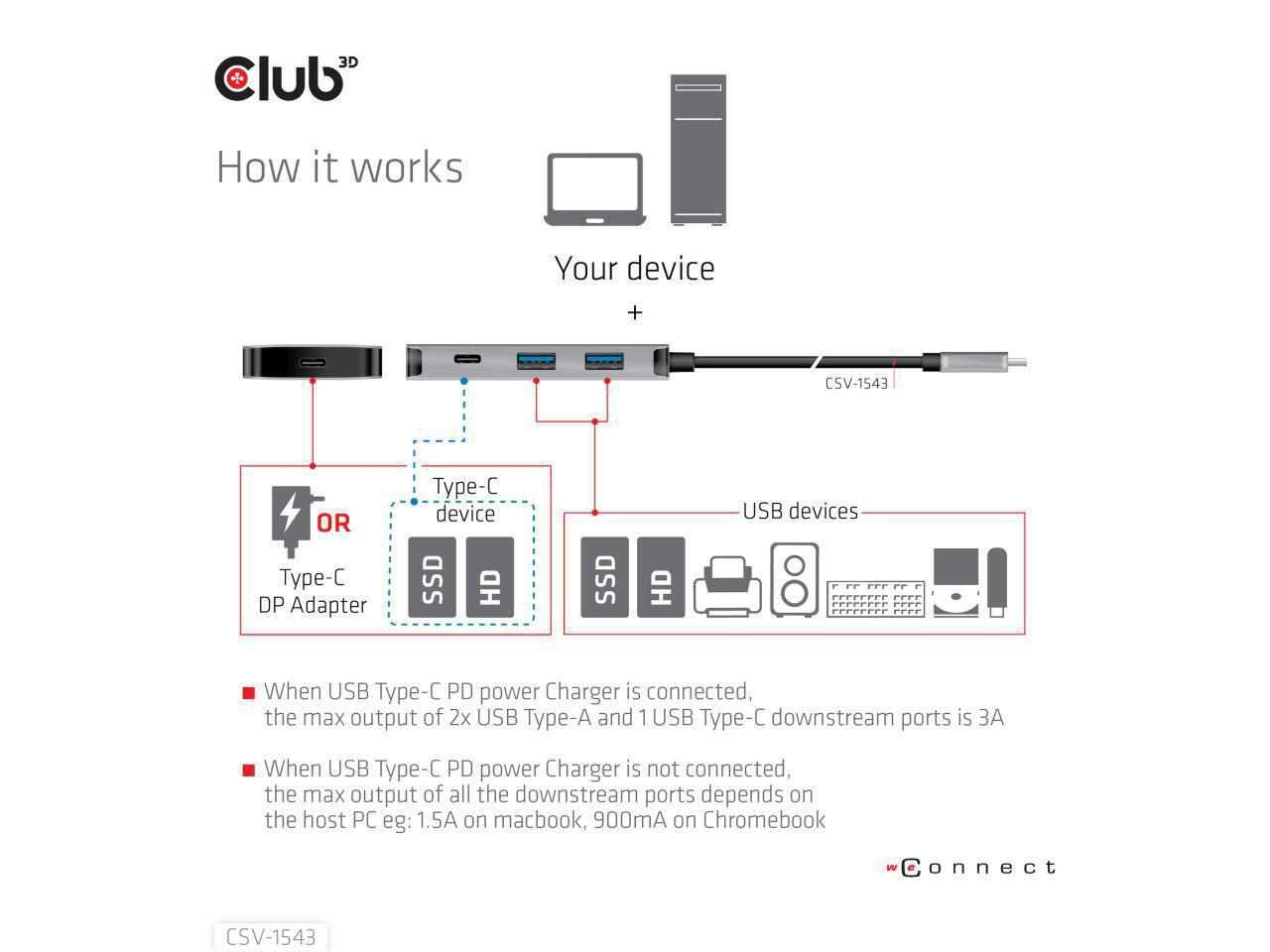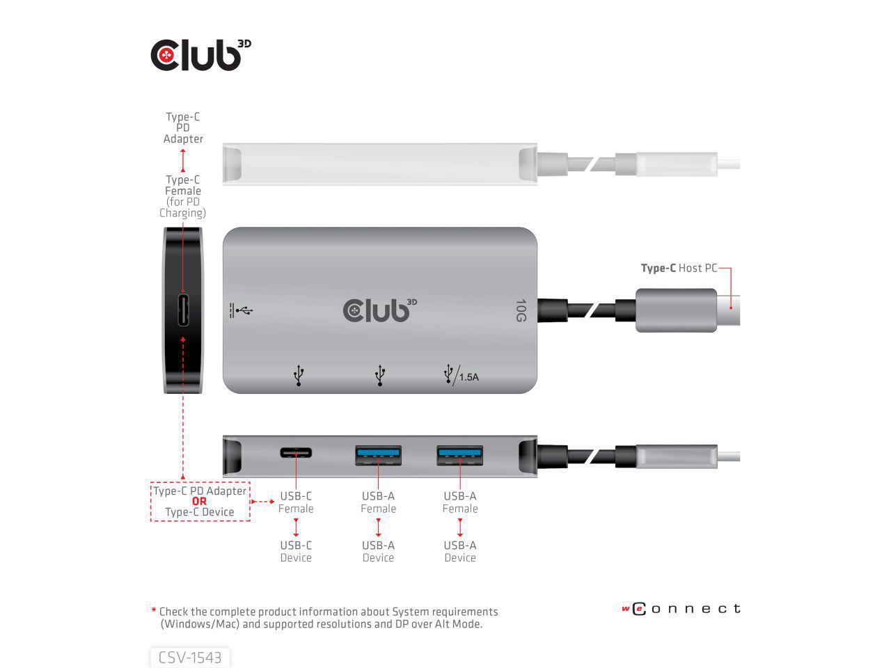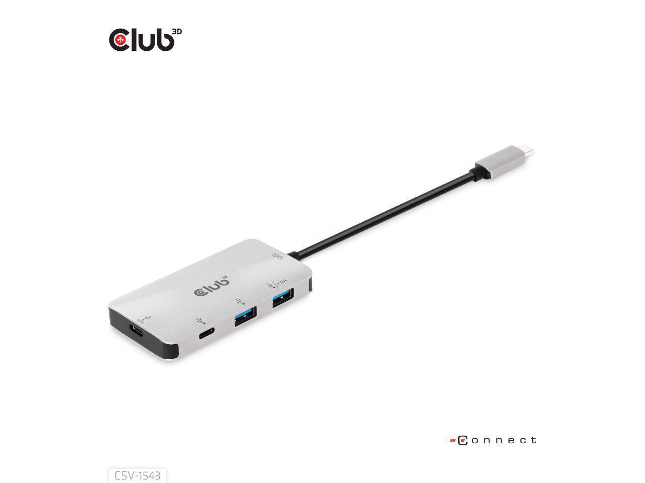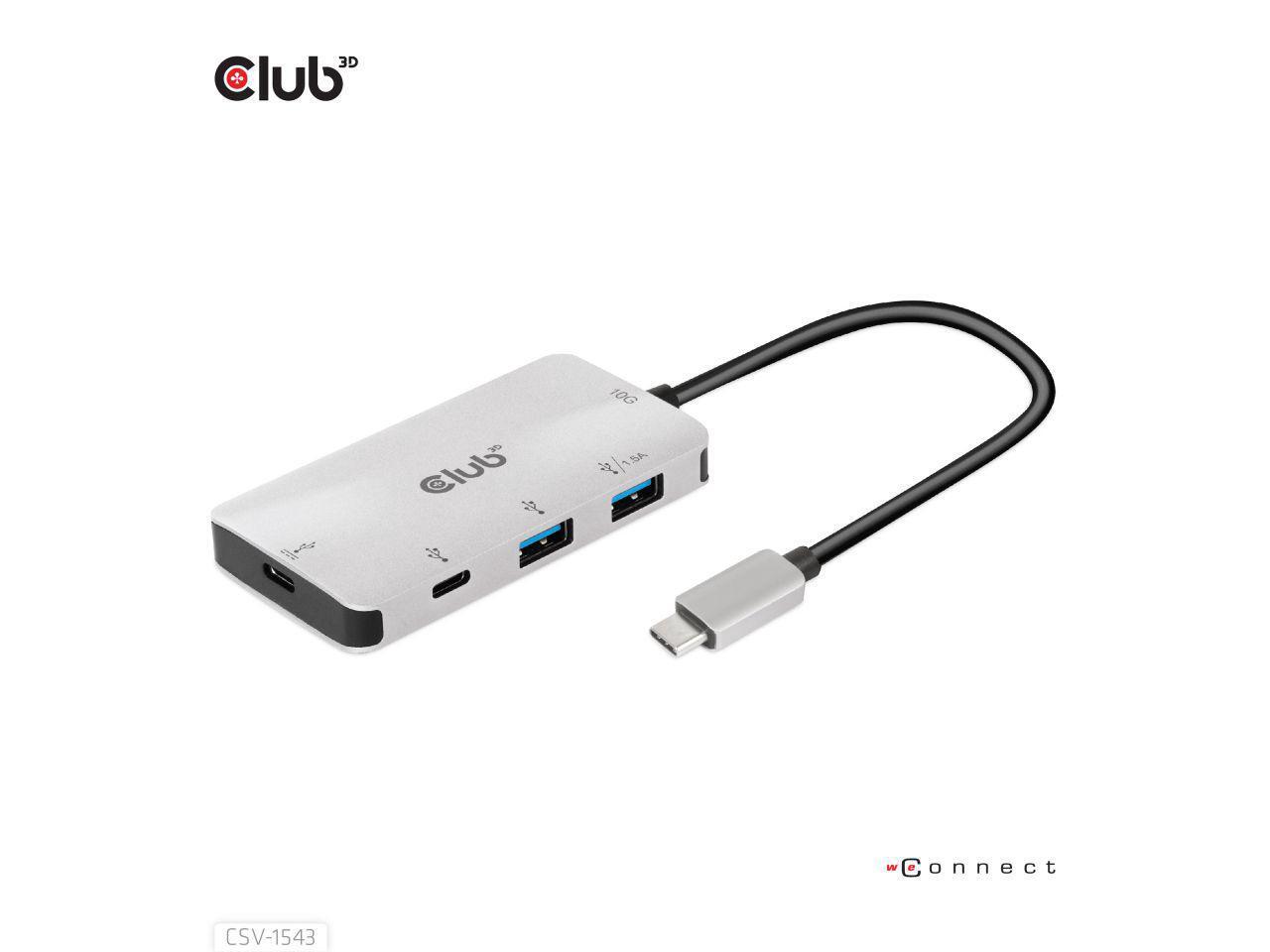 Club3D CSV1543 USB-C Gen2 PD Charging Hub to 2x USB-C 10G ports and 2x USB 10G ports Silver