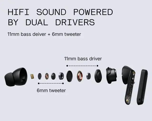 Dominate distractions with 50dB Adaptive ANC these wireless earbuds noise cancelling earbuds auto-detect ear-fit gaps and compensate for noise leakage. Switch to Adaptive mode for intelligent environment-based silencing, making these earbuds perfect ANC earbuds for flights or offices. 6 AI-enhanced HD microphones deliver crystal-clear calls, ideal as earbuds with microphone in noisy environments.